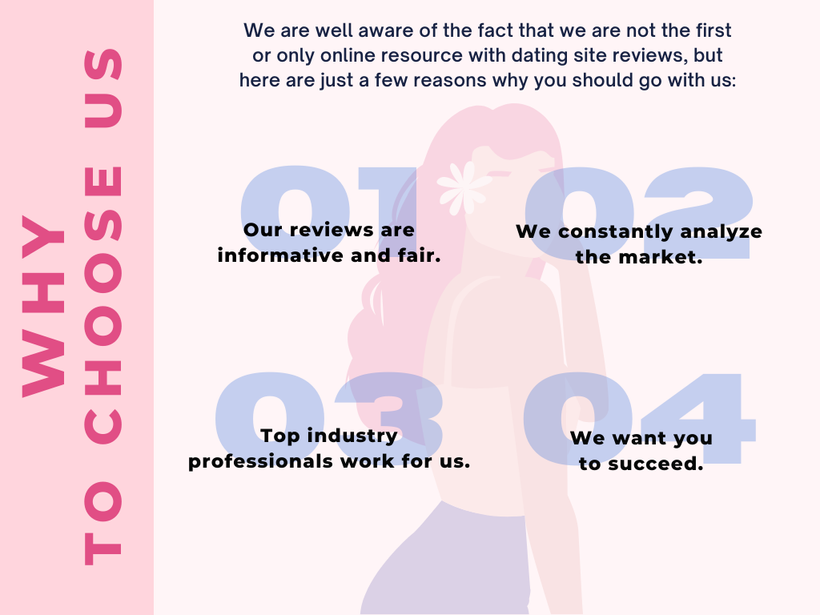 - We constantly analyze the market. We know exactly which dating sites are worthy of your time and which are best to be avoided.